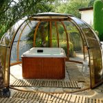 El SPA DOME ORLANDO ™ se instala sobre raíles circulares que permite que gire en 360°. Los paneles de policarbonato marrón ahumado transparente estándar reducen sustancialmente los efectos de la luz del sol, lo que crea un ambiente que es agradable a la vista y mantiene una temperatura interior confortable. El SPA DOME ORLANDO ™ es de fácil instalación y siempre debe colocarse sobre una base firme, hecha de cemento o un material de similares características.