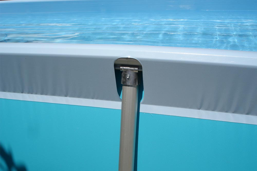Las piscinas rectangulares tienen una potente pieza de unión en cada esquina, dejándolas sólidamente cerradas, con lo que la piscina se sostiene en pie sin agua. Las piscinas se suministran con instrucciones de montaje. No requieren del trabajo de ningún profesional.